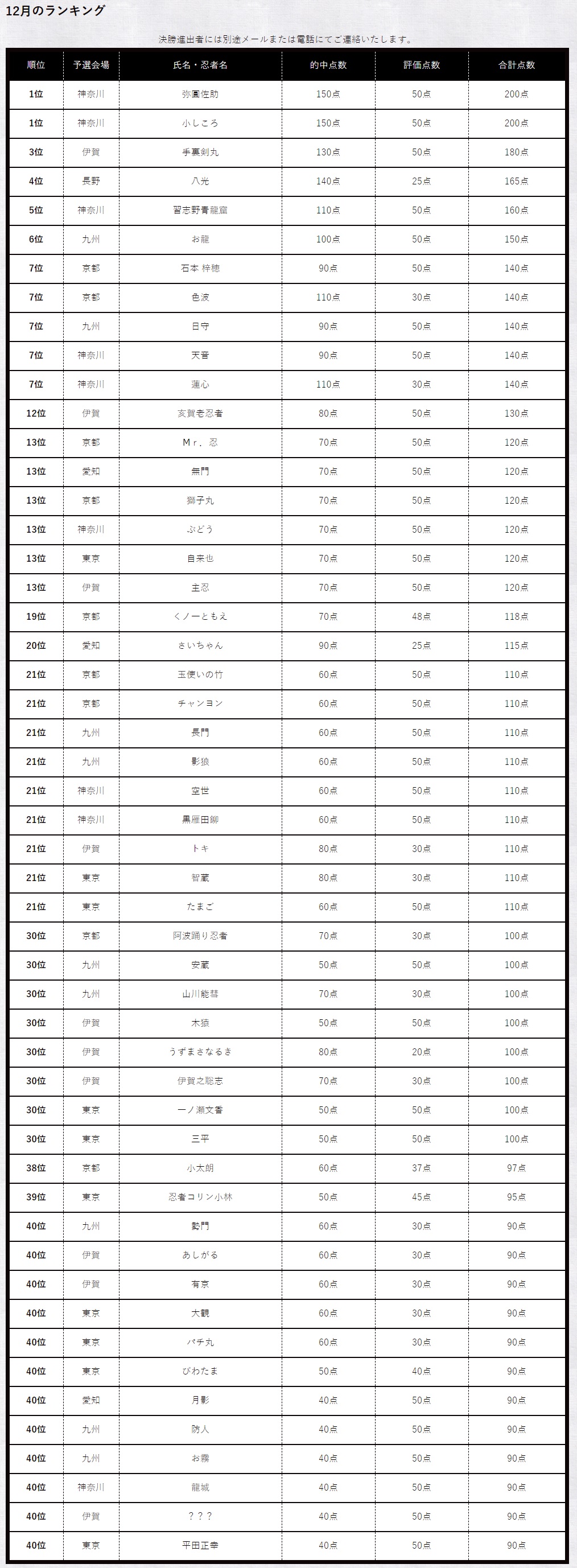 四季の森の2チームと、全国忍者連合選抜チームが決勝へと進みました!