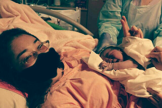 12時50分に破水、その後約4時間で出産という、初産にしてはかなりのスピード出産(`・ω・´)