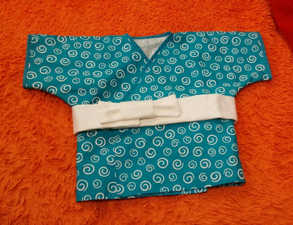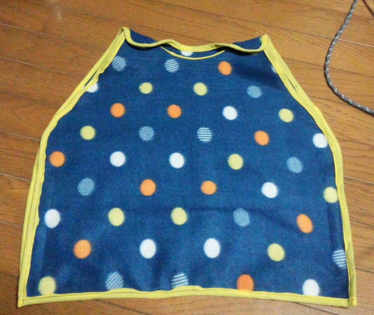 準備してた生地が薄くて、しかもサイズがたりなかったので裾が短くなっちゃった。